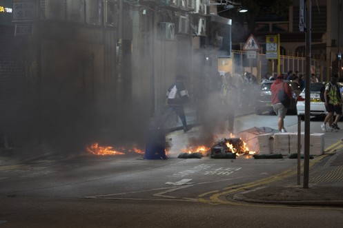 Hongkonger Polizist schießt vermummtem Demonstranten in die Brust