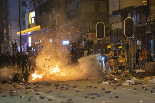 Hongkonger Polizist schießt vermummtem Demonstranten in die Brust
